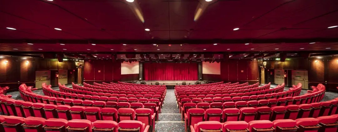 标准化的座椅,宽敞的空间,高端大气的舞台和环境,可容纳600余名 人员。客场嘉宾表演,郭德纲弟子房鹤迪邮轮新相声表演,明星音乐会 。 同时在娱乐活动上,我们秉持以人为本的理念,把观众的参与性与互动性放在首位。将宾客之间的互动,以及员工与宾客间的互动体现出来。通过中国宾客喜欢的,舞蹈派对,乒乓球,水上排球,互动厨艺秀等一系列活动,抓住宾客的心。
