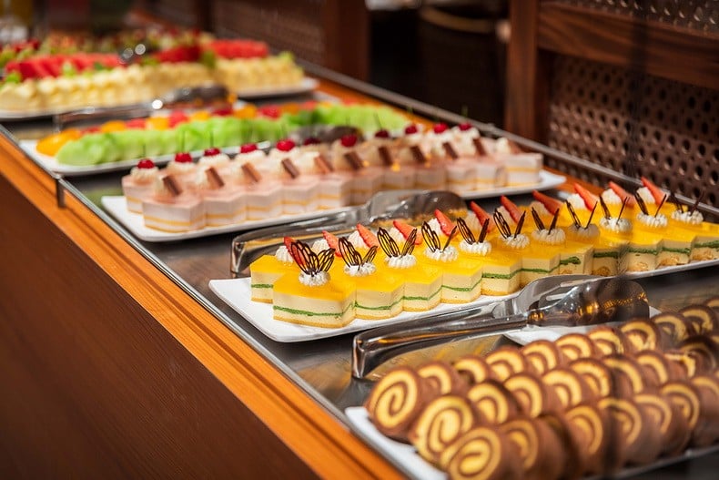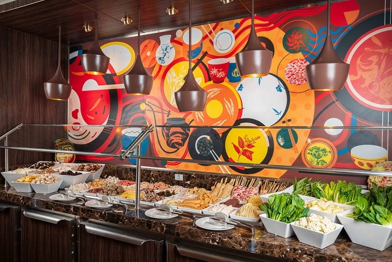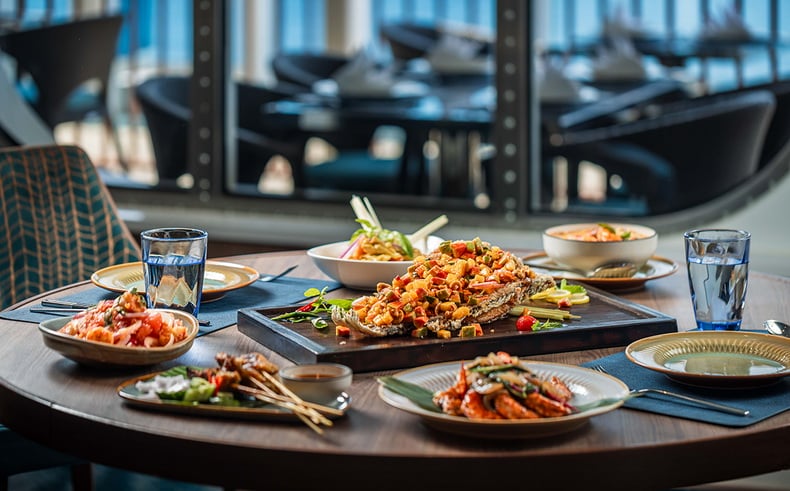 扑面而来的是浓郁海滨度假氛围,中、西、融合特色菜单每日更新,网罗亚洲及全球各地的风味美食,还可现场近距离观摩烹饪表演。