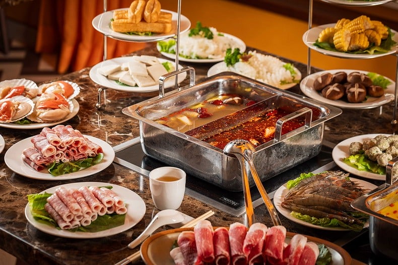 川粤融合火锅,精选品质海鲜、肉类等新鲜食材,搭配24种秘制蘸料,以及麻辣牛油、金汤花胶鸡、沙茶皇牛腩、椰香清远鸡、时令菌菇等5种风味锅底,任你热辣开涮!