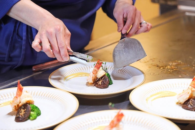 以传统的日本烹饪技艺为基础,结合创意与现代元素,呈现精致的料理体验。无论是嫩滑的和牛、鲜美的海鲜还是新鲜蔬菜,每一道菜品都散发着诱人的香气和美味。你可以亲眼目睹厨师们的精湛技艺,体验日式铁板烧的独特魅力。