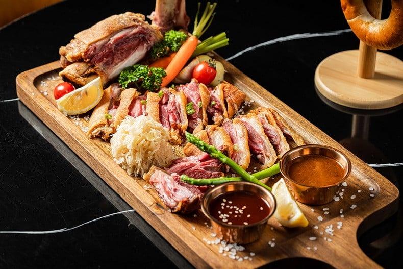精选优质原料,匠心酿造,体验纯正德啤的至鲜至醇。搭配香醇烤肠、脆皮烤鸡、脆皮猪肘、香煎牛舌等德式经典菜肴,美味与啤酒交融,尽享德式风情。更有乐队现场助阵,尽享多维感官体宴。