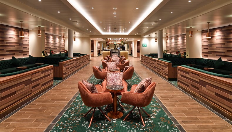 一个开放式场所,位于充满现代艺术气息的中庭广场。作为船上娱乐的核心之地,这里提供休憩、等候、茶饮、咖啡、酒水、小食等一系列贴心服务。