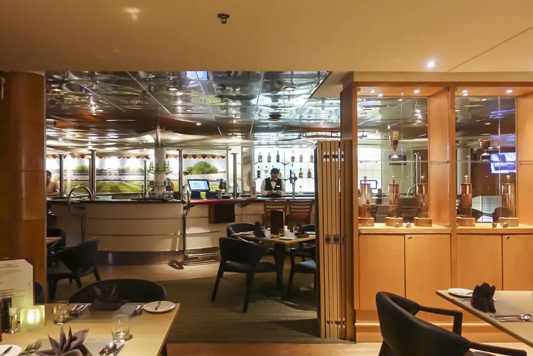 专为中国宾客打造喜闻乐见的奶茶吧。让咖啡和奶茶爱好者在海上也可以品尝到自己喜爱的饮品。乐师带来小提琴,钢琴演奏,结合夜晚的温柔,感受宁静与惬意。