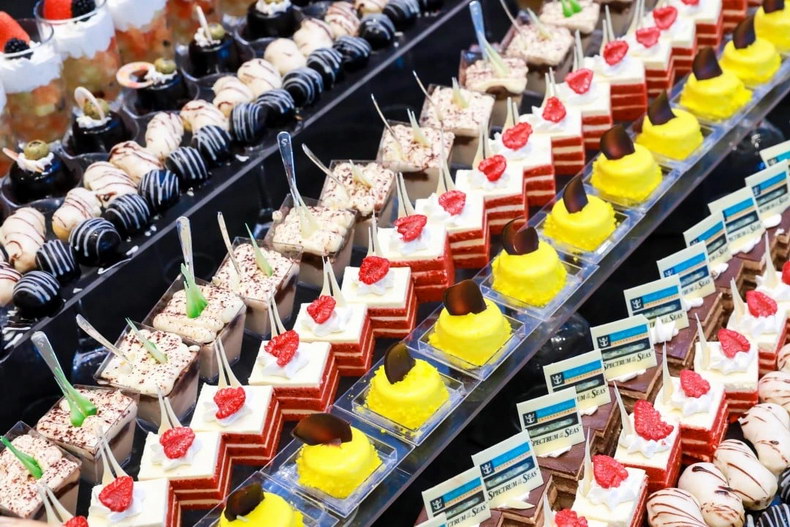 帆船自助餐厅是皇家加勒比游轮的标志性餐厅,在这里可以全天候享用寰宇美食。从西式的汉堡薯条、墨西哥薄饼到中式的热炒细点,更有丰富的时鲜水果和甜品糕点,不同时段更换的菜品满足您全天不间断的美食需求。