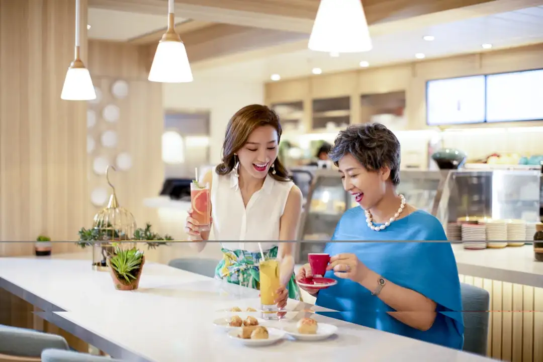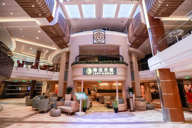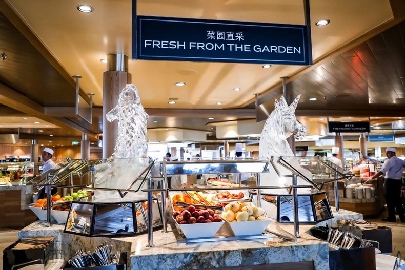 位于270度景观厅入口处,这里早餐供应丰富的麦片牛奶和新鲜水果,午餐提供新鲜色拉、现烤三明治和口味丰富的汤品,选材新鲜,味道可口,您还可以在享受美食的同时欣赏270度景观厅落地玻璃外的海天一色。