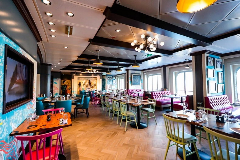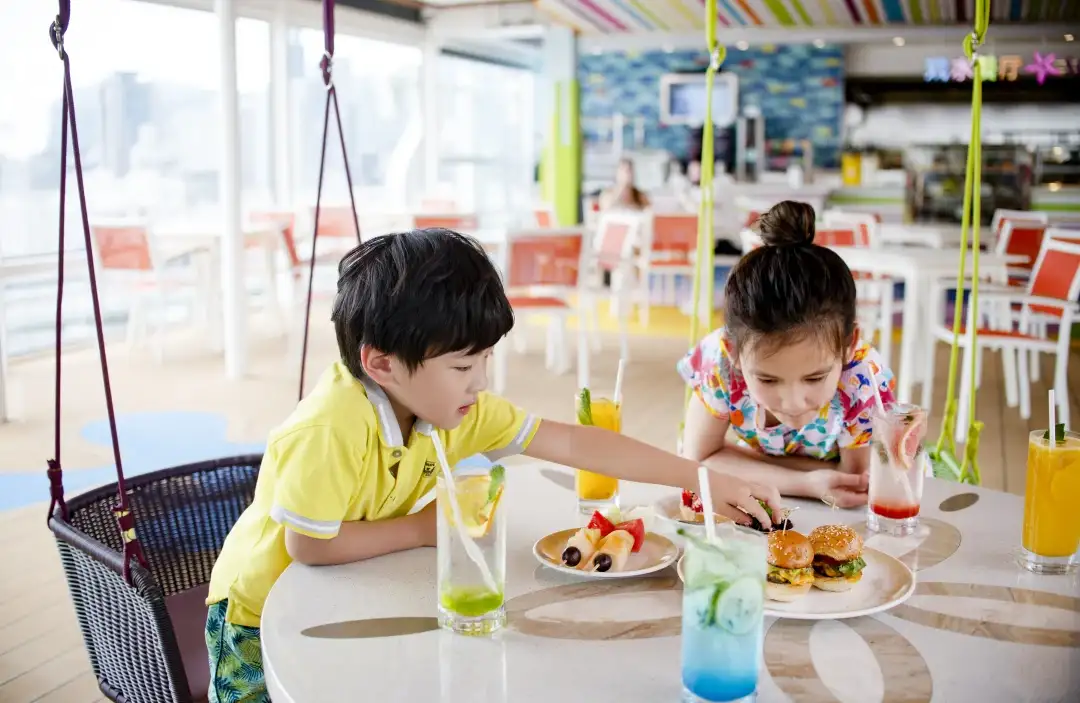 位于14层甲板的戏水餐厅,紧邻儿童嬉水区域。绚烂的色彩配上童趣造型的桌椅,瞬间将亲子用餐变成又一场游乐体验。新鲜食材经由大厨匠心巧手,悉心呵护每位宝贝的营养用餐。