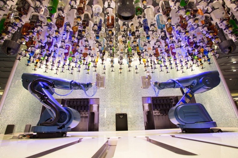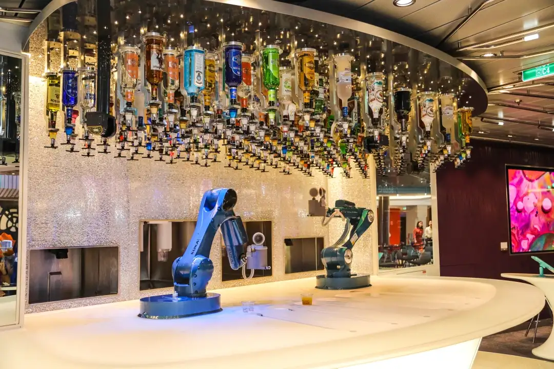 充满科技元素奇趣无穷的机器人酒吧拥有两台机器人手臂,它们可以创造无数的调制组合,从经典到定制,从含酒精鸡尾酒到无酒精饮料,满足您的各式需求。只需在平板上下达指令,它们就会用流畅的动作为您调制属于自己的精彩特饮。