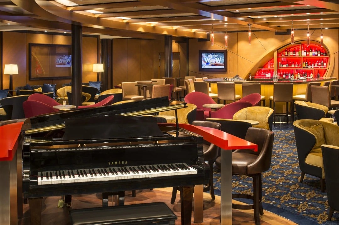 思古诺酒吧是皇家加勒比游轮的招牌酒吧,深受宾客们喜爱。完美调制的鸡尾酒和现场音乐汇聚在一个温馨的以海洋为主题的酒吧内。在这里您可以舒适地坐在桅杆下、舷窗旁静静地欣赏美妙的钢琴演奏,或与人们聚在钢琴旁跟随音乐一起吟唱经典曲目。