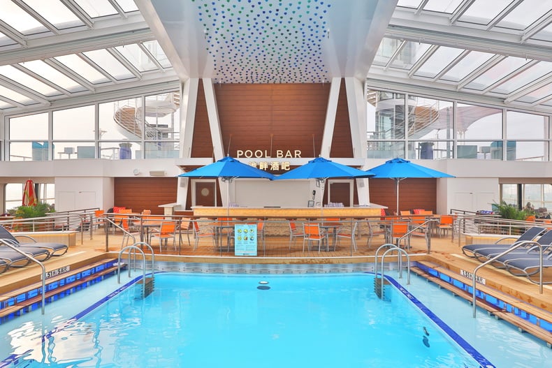 无需离开舒适的池边躺椅,便可享用绵密爽口的热带风味鸡尾酒、香槟或是喜爱的冰镇啤酒。与美酒搭配,让您的甲板泳池体验变得更清凉。