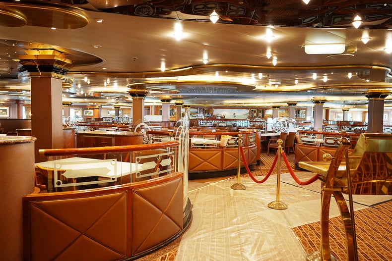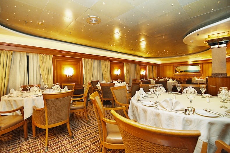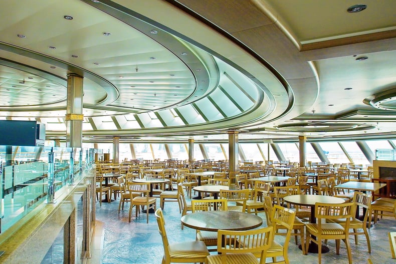 主餐厅,位于5/6楼船中,每层楼都可容纳550人同时用餐。汇聚海上丝路国家异域风味,畅享中华古今精品美食。