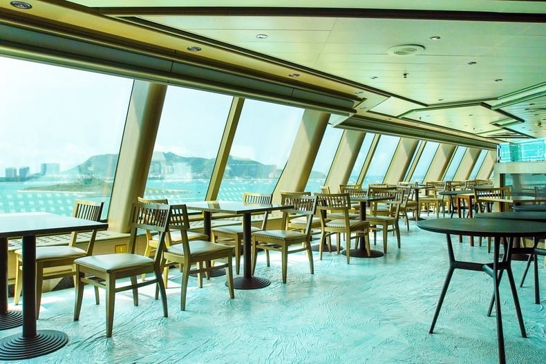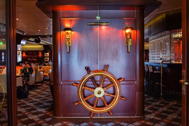 7楼船尾的启航酒廊可以容纳460人,伴着美酒和婉转的音乐,让彼此在夜晚都变得更加动人。