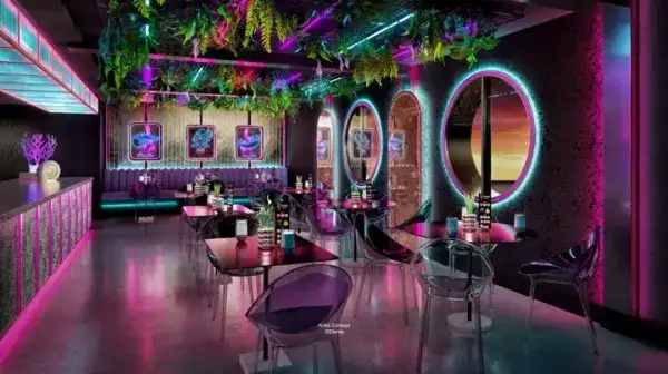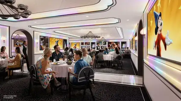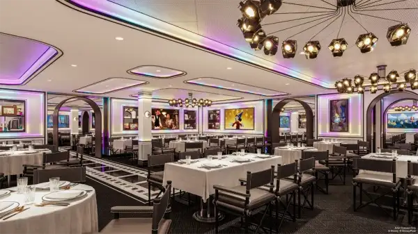 Animator's Palate餐厅展现了迪士尼和皮克斯动画的永恒经典。夜幕降临,这个优雅的餐厅从黑白逐渐变为充满活力的彩色。四周环绕着来自迪士尼和皮克斯电影的艺术作品和道具,每一个细节都致敬了电影制作的魔力。
