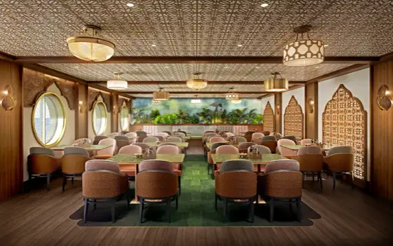 在Navigator's Club,宾客们将被带回到邮轮旅行的黄金时代。延续独特的“船长餐桌”晚宴的海洋传统,宾客们将体验到到环球旅行的米老鼠和他的朋友们带来的精彩故事和音乐表演。