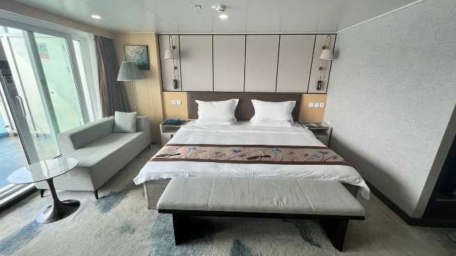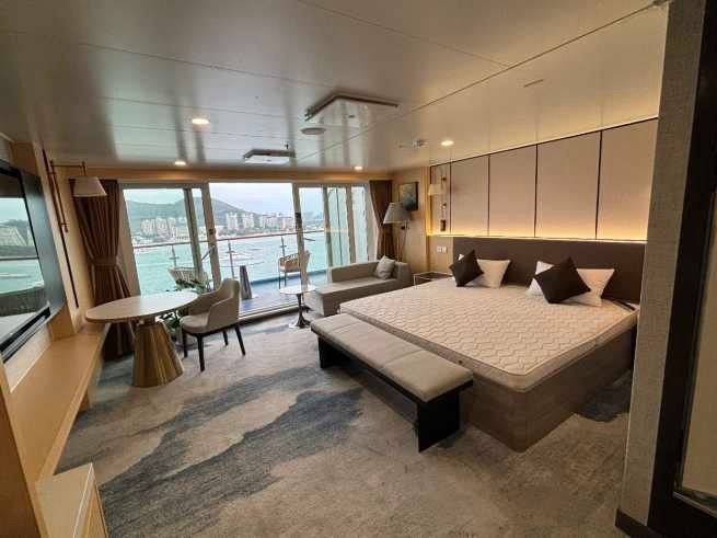 位于10楼中部,2.2米*2米大床,双衣柜,边柜,床头柜,书桌,茶几,沙发。独立海景阳台