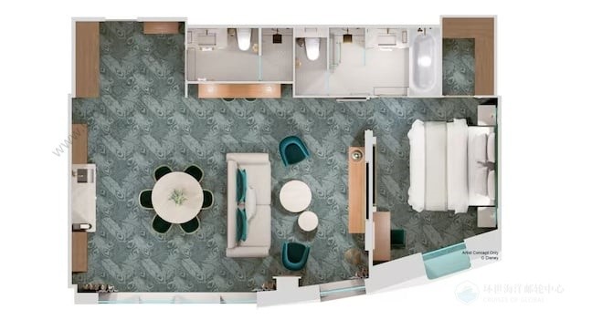 主卧配有特大床,客厅配有双人可转换沙发床和两张单人壁挂床。主浴室配有独立浴缸,主卧内设有步入式衣橱,餐饮区,迷你吧,次卫配有淋浴。至少有一台65英寸的电视。