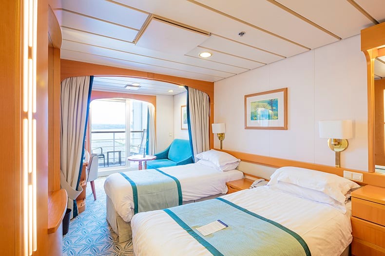 房间总面积包含阳台面积,位于10楼船头及船尾,面朝大海,和风暖阳,配备独立阳台和沙滩椅。部分房内有1张单人或者双人沙发床供第3~4人入住。