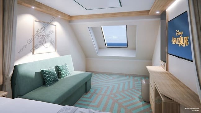 大床、双人沙发床。干湿分离浴室,玻璃门淋浴间,隐私隔板,50英寸电视,以及俯瞰大海的窗户。