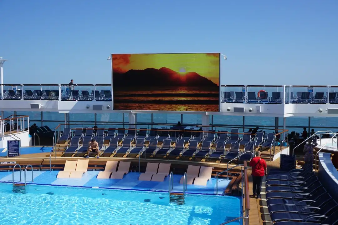 第一次坐游轮,对游轮上面的一切都很是新鲜,游轮上的免费餐厅主餐厅餐点相当的丰富,也很好吃,服务整体都非常的好,船上可以游玩的地方跟游乐设施非常的多,比没来之前的想象中好非常多,非常值得第一次游玩的推荐光谱号,船上的网络需要另外购买,有一些指定的项目也是都需要另外买的,价格觉得还算合理,船上的房间每天都打扫卫生,整洁,很干净,船上的服务人员都很积极热情,到地方下船上船的流程安排的都很好,几乎没有排队,非常好的游轮体验,船上的北极星风景画面还不错,可是价格偏高,碰碰车,空中飞人,攀岩,冲浪等就很值得玩,性价比很好,船上的游泳池非常老少咸宜,室内室外都非常的好,船上的甲板有一整圈的慢跑步道,早晨跟傍晚的时候跑一下风景好也不热,心旷神怡,船上记得多带一点好看的衣服,出片的地方很多,很适合拍照每个角落,搭配上在海上的无敌海景照片都非常的出片,船上也有专属的摄影师可以付费拍摄,觉得5天的行程很快就过去了,还没时间好好享受全部的设施,期待下次旅程!