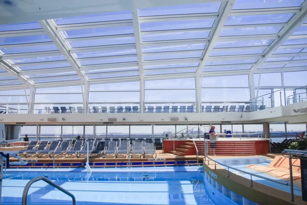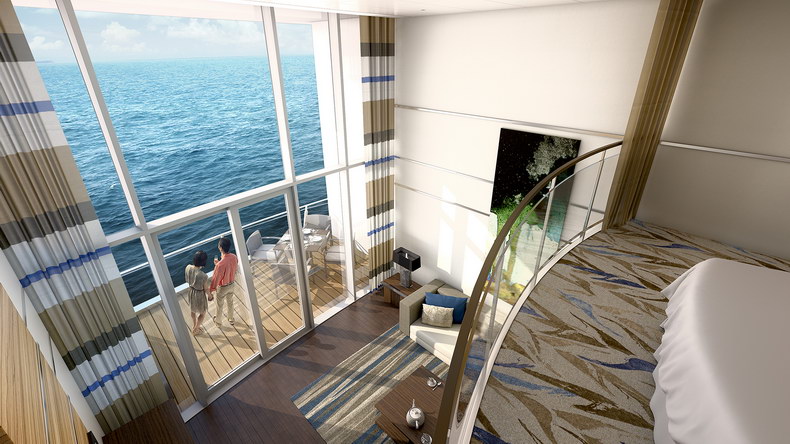 登上北极星,升至距离海平面88.6米的高空!从透明玻璃望出去,既能享受无边的蔚蓝大海,又能把赞礼号的甲板景色尽收眼底!